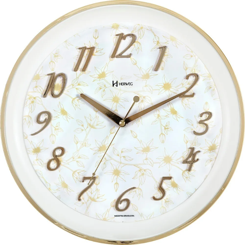 Relógio de parede branco com dourado números em alto relevo Herweg 6822
